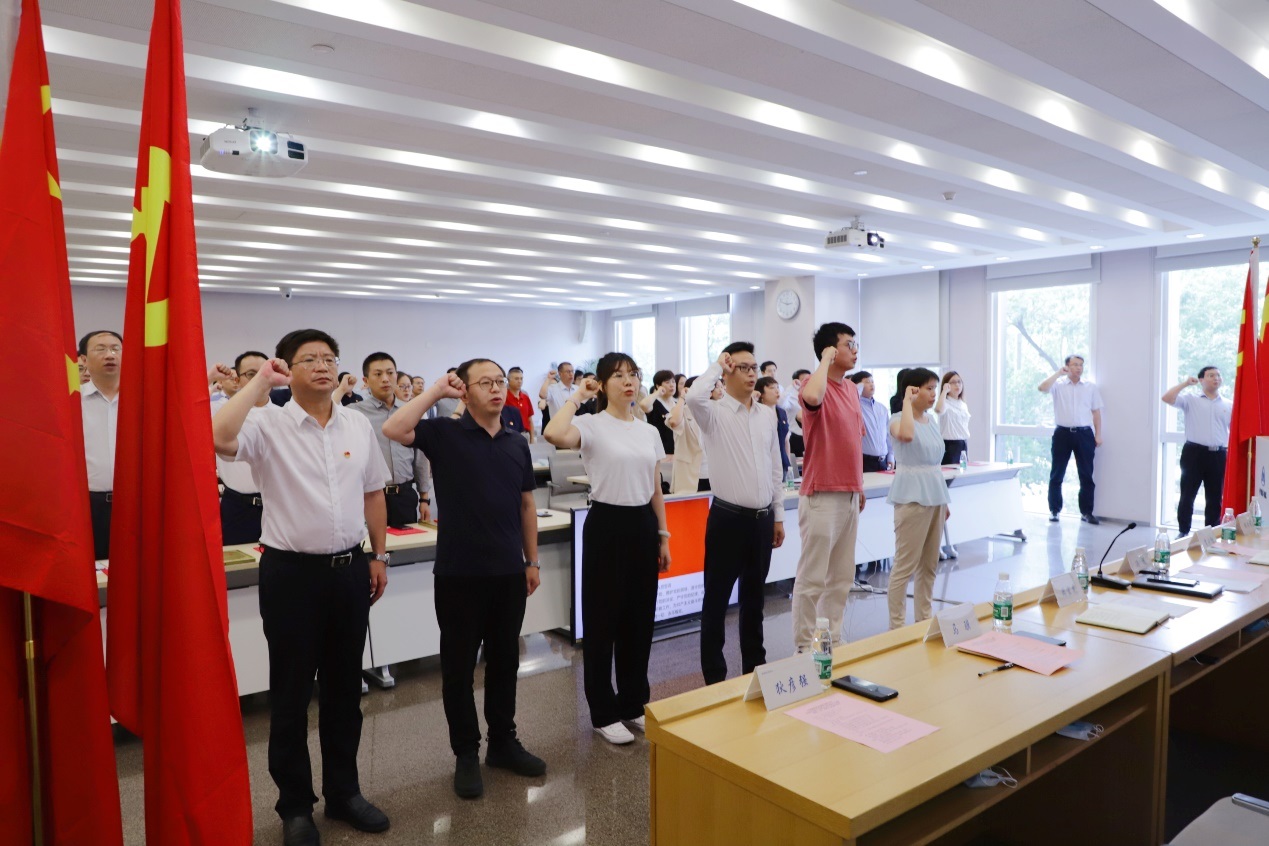 会上,新党员代表面对鲜红的党旗进行入党宣誓,其他与会党员重温入党誓词。