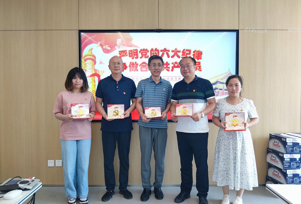 6月27日,检测一院党支部开展“过政治生日 忆入党初心”主题党日活动。支部书记黄选明主持会议,支部全体党员参会。全体党员共同重温入党誓词,再次向党作出“对党忠诚,积极工作”的庄严承诺。支部为6、7月份入党的党员颁发了“政治生日”贺卡,激励党员不忘初心、牢记使命、永远奋斗。党员代表们结合自身的成长经历,真诚地分享了他们的入党初心和心得体会。全体党员认真学习了习近平总书记关于全面加强党的纪律建设的重要论述,逐字逐句学习了《国有企业管理人员处分条例》,并承诺在工作和生活中要“守住底线 不越红线”,以更高的标准、更严的要求约束自己的行为。