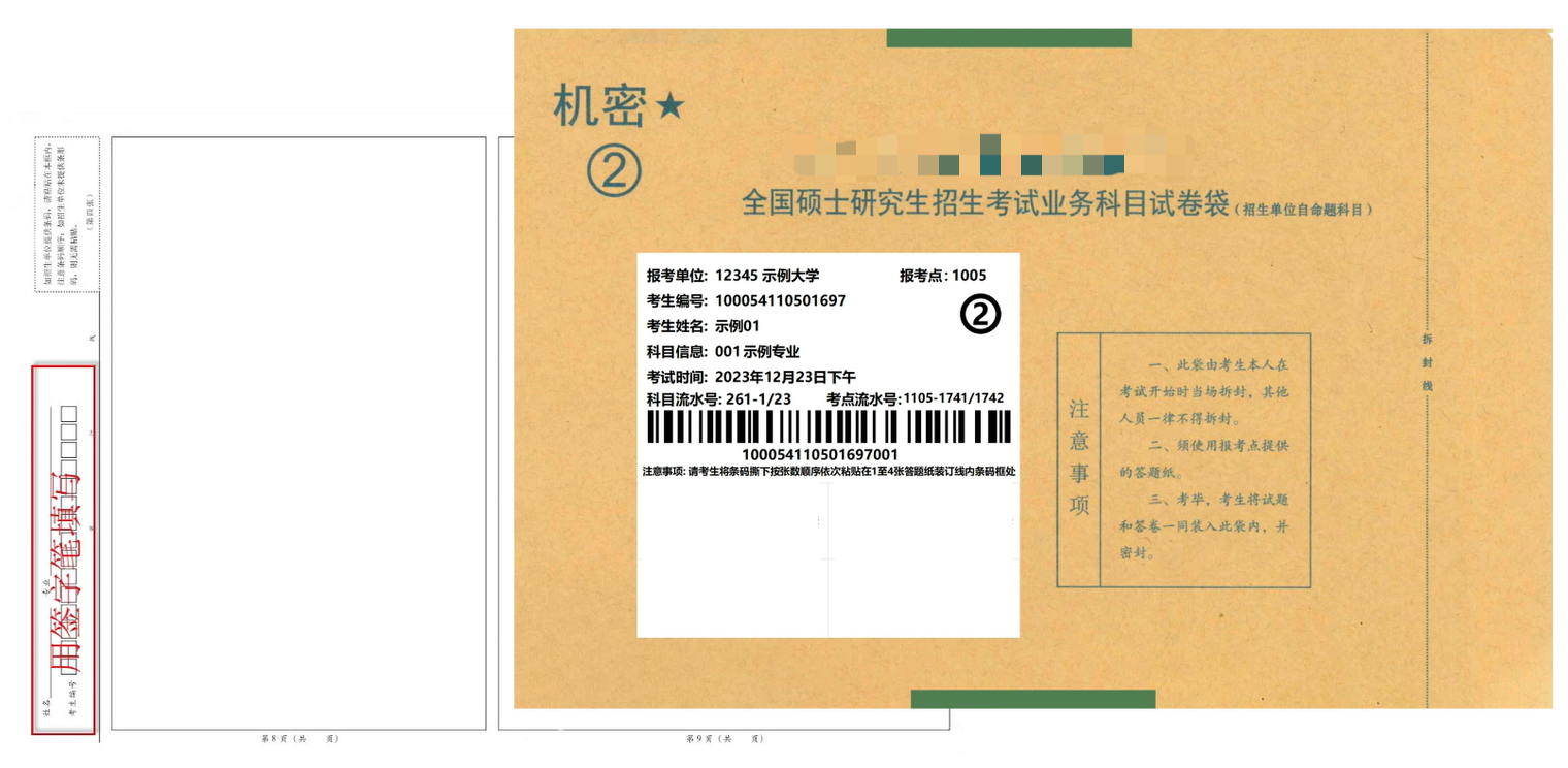 考生拿到自命题试卷袋后,首先请认真核对试卷袋上的个人信息,包括姓名、考生编号、考试科目等。如信息有误,请及时向监考员反馈。个人信息确认无误后,再将条形码按顺序依次揭下,并粘贴在1至4张答题纸对应的条形码粘贴框处。