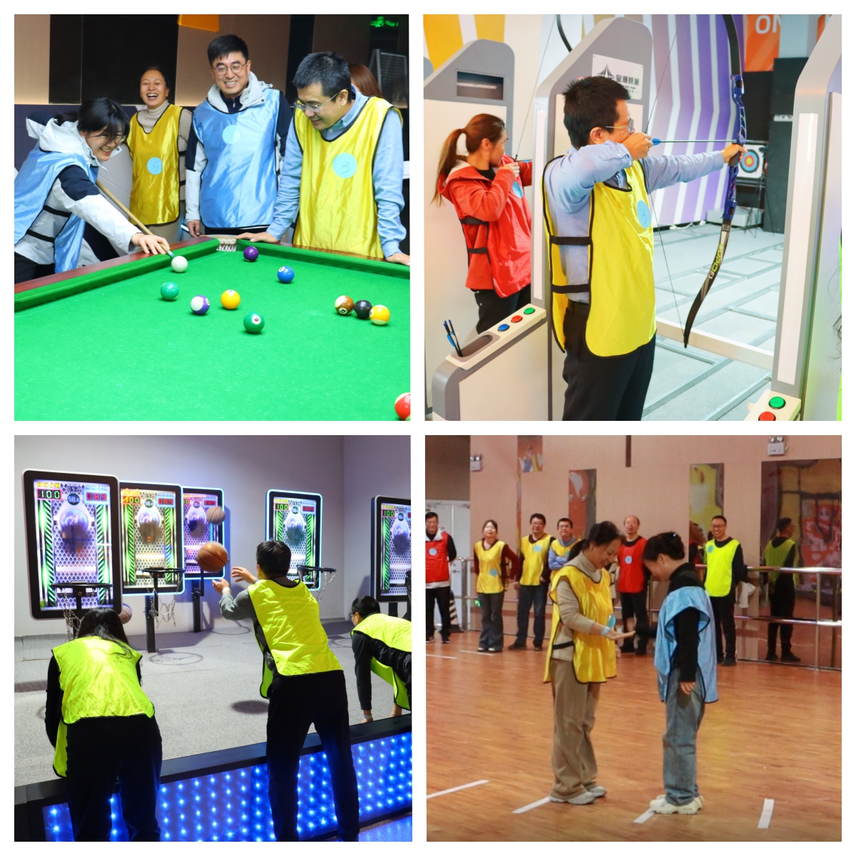 本次团建精心设计了“趣味竞技+团队协作”两大环节。全体员工通过随机抽签的方式组建了四支战队。在趣味比赛环节,篮球、射箭、台球、保龄球等项目轮番登场,员工们踊跃参加、奋勇争先。团队游戏环节“一马当先”、“贪吃蛇赛跑”等协作游戏,考验着团队的默契与配合能力。活动现场气氛热烈,加油呐喊、欢声笑语不断,每一位员工都在活动中感受到了团队的温暖与力量。
