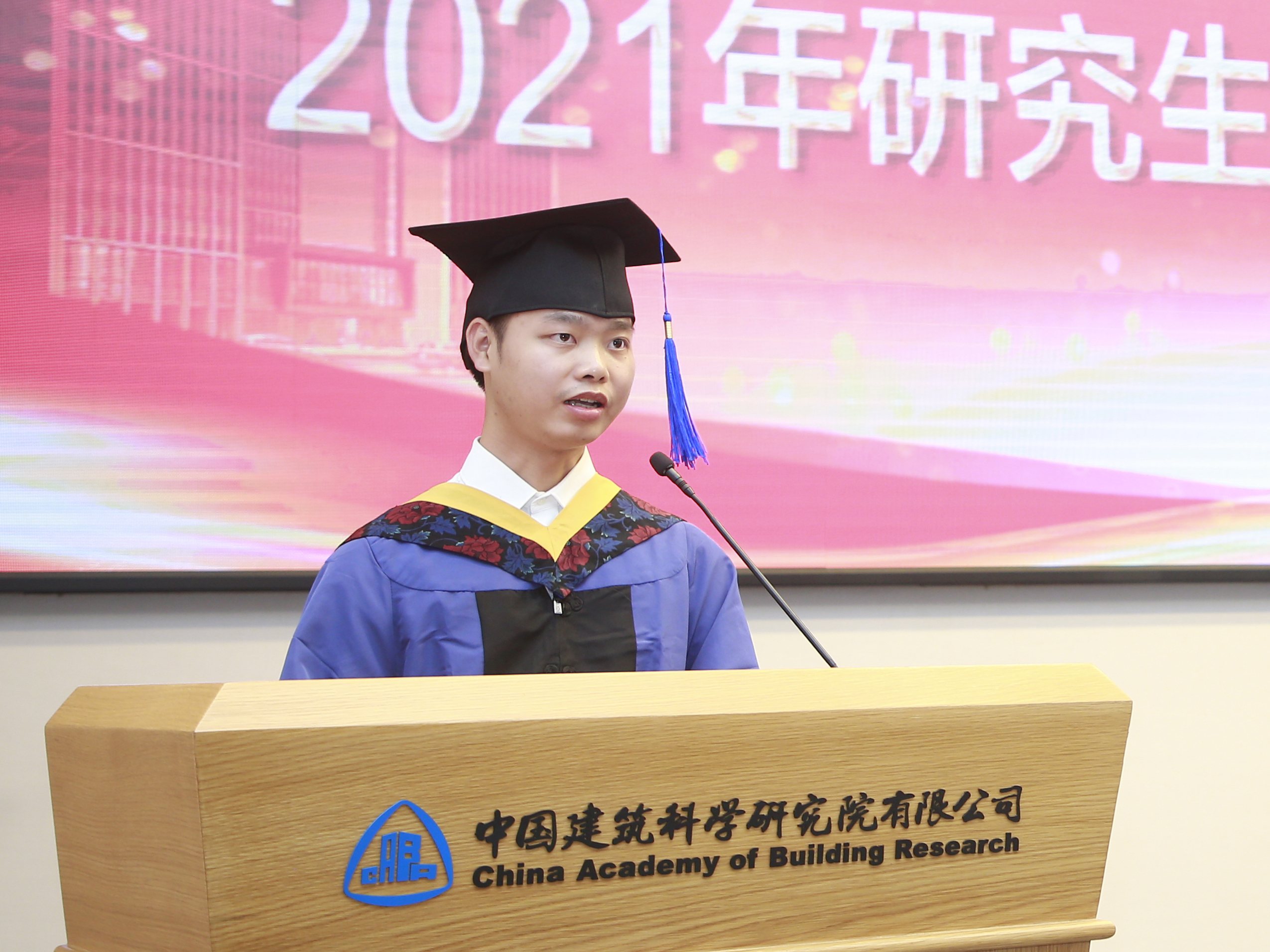 关青锋作为毕业生代表发言。他分享了在建研院的学习和生活时光,以及成长经历,表达了对建研院、对老师们的感恩以及对同窗的不舍与祝福。表示将继续秉承建研院的核心理念和核心价值观,勤奋学习、努力工作,不辜负领导和老师们的殷切期望。