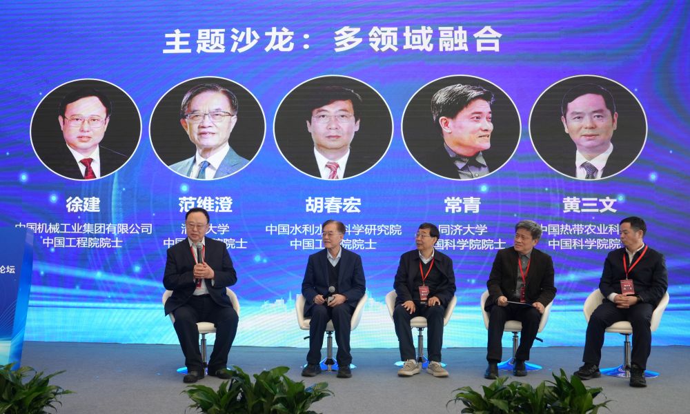 多领域融合主题沙龙环节,徐建院士、范维澄院士、胡春宏院士、常青院士、黄三文院士就建筑、交通、水利、农业、消防等传统工程建设行业,电子通信、人工智能等高新技术专业,以及社会学、经济学、美学等专业的交叉融合、相互修正、相互促进进行了全面研讨,并提出了有关应用场景的研究建议。