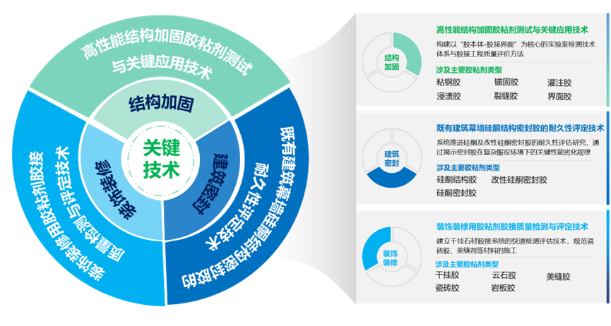 胶粘剂是房屋建筑全流程的核心材料,构建高效、精准的胶接系统性能检测与评估技术体系,是打造“好房子”的关键支撑。中国建研院积极响应“好房子”建设需求,以胶接材料及胶接系统为核心检测评估对象,形成胶接体系品质保障检测与评估三大关键技术。